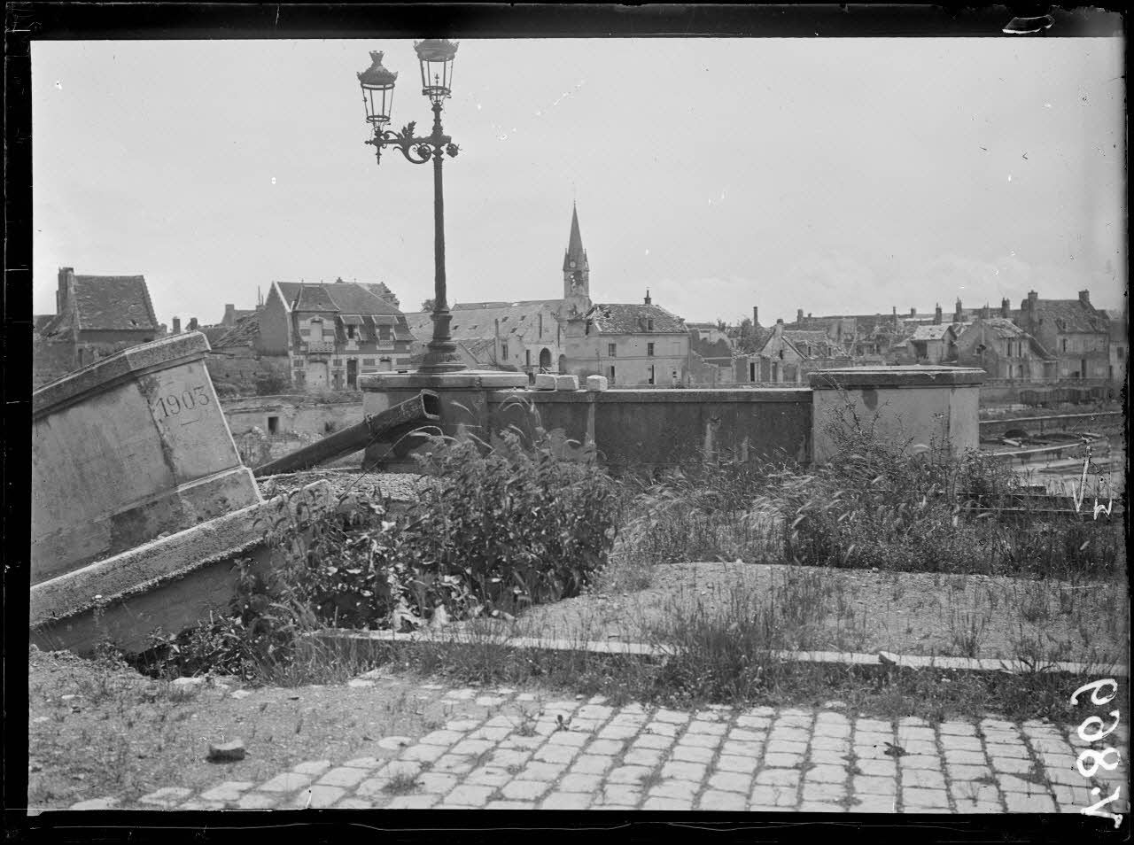 Soissons, le pont Neuf. Au fond, les lignes allemandes.