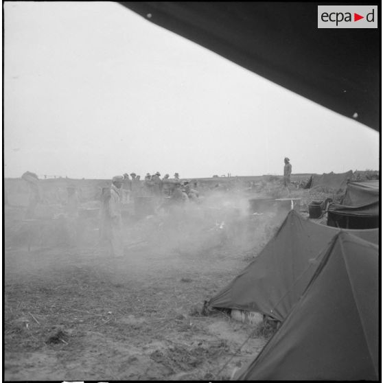 Les cuisines du 69e régiment d'artillerie d'Afrique (69e RAA) sur le bivouac à Luc Nam.