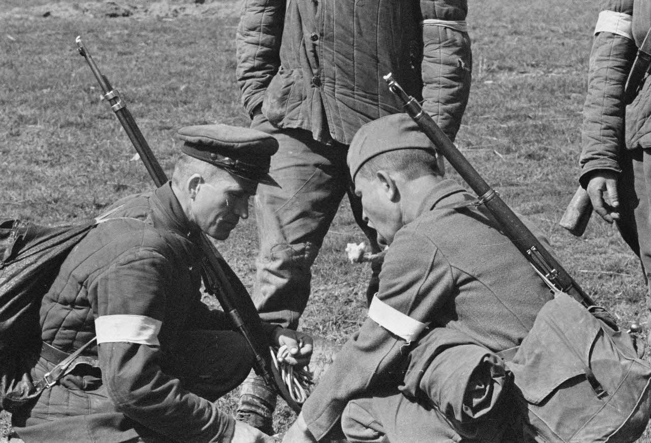 Une unité mixte composée de sous-officiers allemands et de soldats soviétiques combattants dans les mêmes rangs.