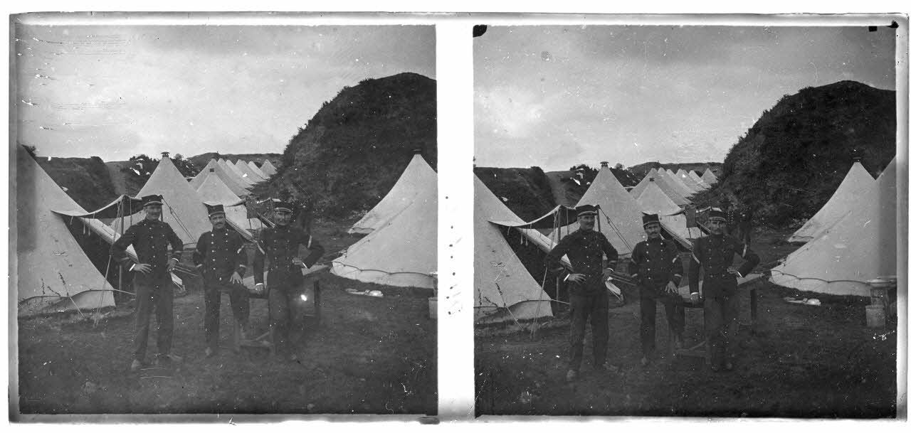 Archives photographiques du lieutenant Emile Coquibus affecté au 6e régiment d'infanterie coloniale (RIC) : loisirs et formation militaire (1906-1907). Après près de quatre années passées en Afrique, en Haute-Guinée (8 février 1901 - 16 janvier 1905), Emile Coquibus revient en France et suit plusieurs formations militaires. L'état de ses services indique qu'il a accompli un stage aux Etablissements Hotchkiss du 31 janvier 1906 au 16 février 1906. Affecté au mois de juillet 1906 au 6e RIC, il quitte ensuite cette unité le 24 mai 1907 pour rejoindre le 4e régiment de tirailleurs sénégalais (voir reportage D180-7). Le lieutenant Coquibus réalise une partie de ces photographies dans le Finistère lorsqu'il est cantonné à la caserne du quartier de Pontanézen, à Brest, au cours de l'hiver 1906-1907.