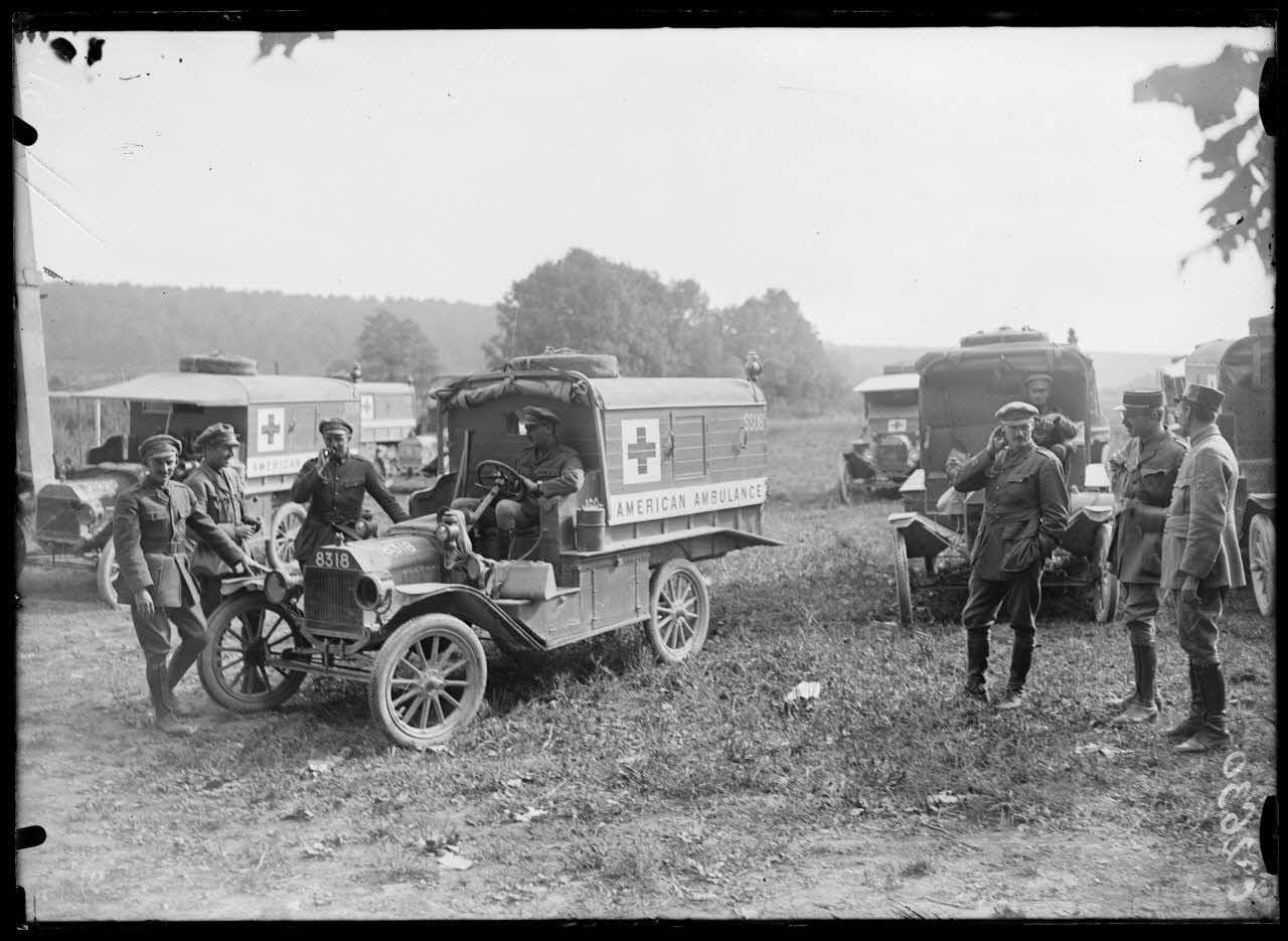 Note : créée en 1914 par Matt Piatt Andrew, l'AAFS (American ambulance field service) est une organisation caritative qui sert sur le front. Cette association est composée de volontaires américains qui souhaitent servir comme conducteur d'ambulance. Les chauffeurs de l'AAFS contribuent, avec les unités sanitaires françaises, à l'évacuation des blessés vers les hôpitaux de campagne.