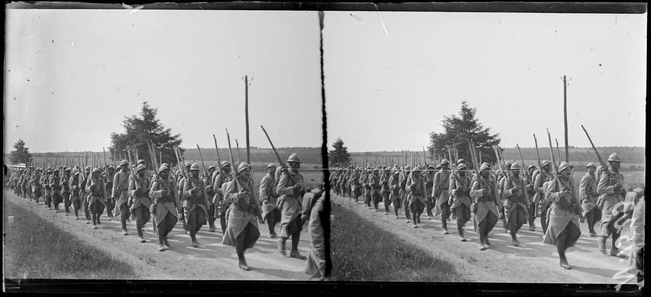 Sompuis (Marne). Troupes sénégalaises. La colonne en marche (Juin 1917). [légende d'origine]
