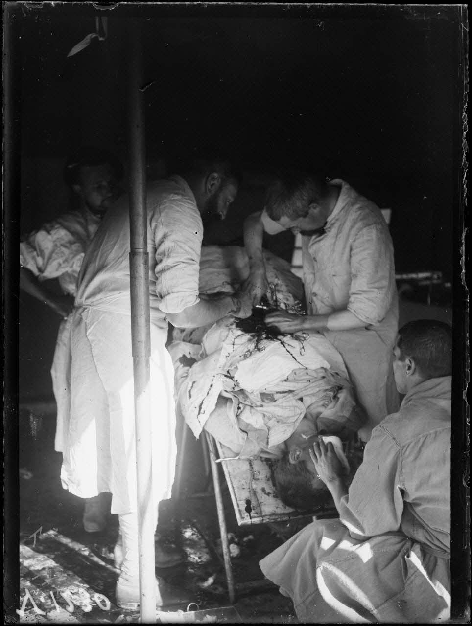 Sopotznni. Ambulance de colonne mobile n°1. Entéro anastomose par application du bouton de Murphy, à la suite d'une plaie de l'abdomen par balle de fusil.