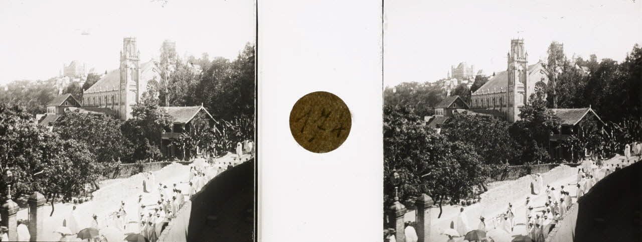 Sortie de la messe à la cathédrale le dimanche (bananiers). [légende d'origine]