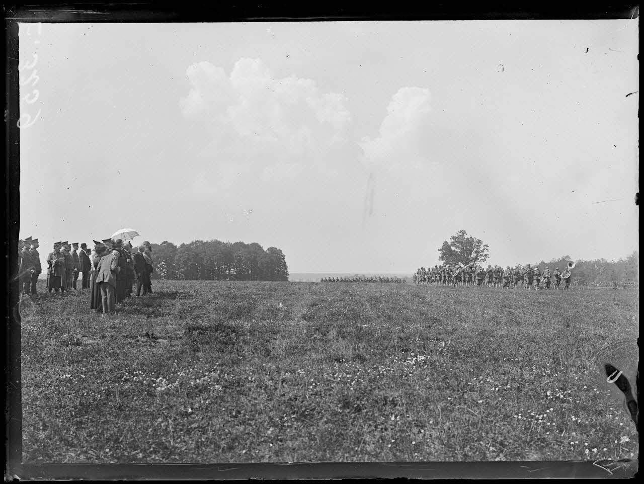[Soulaines.Aube.Remise au 6eme régiment américain de deux drapeaux offerts par les descendants du Maréchal de Rochambeau.Le défilé du régiment après le cérémonie.]