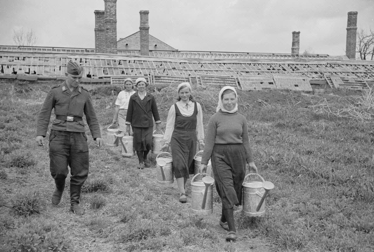 Des femmes russes travaillent dans une serre réquisitionnée par l'armée de l'air allemande.