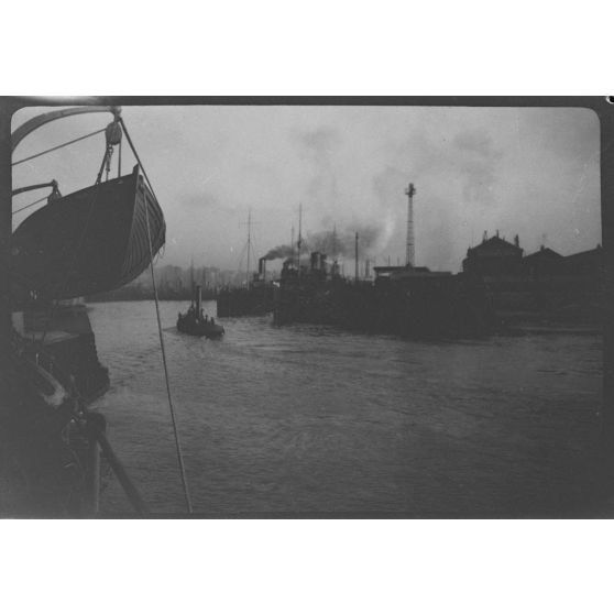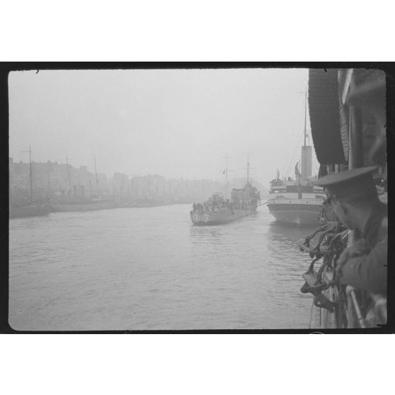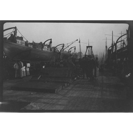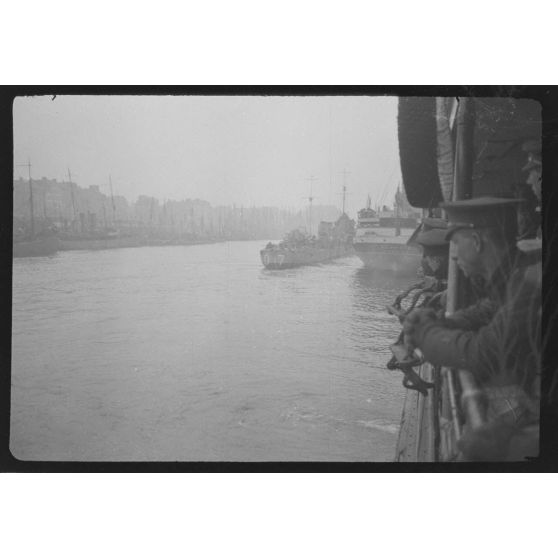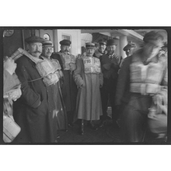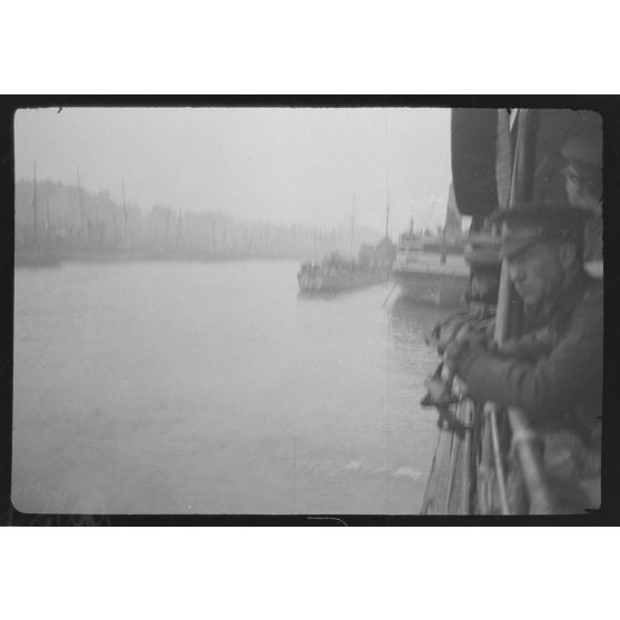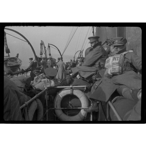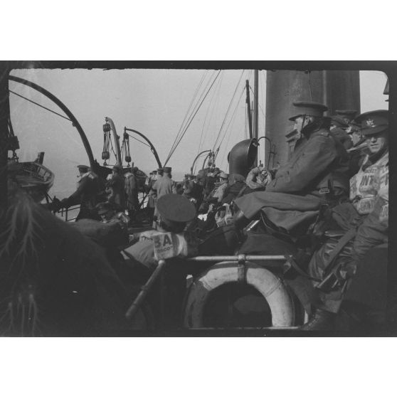 Reportage non daté en compagnie de soldats canadiens et britanniques sur un navire, peut-être à destination de Londres.