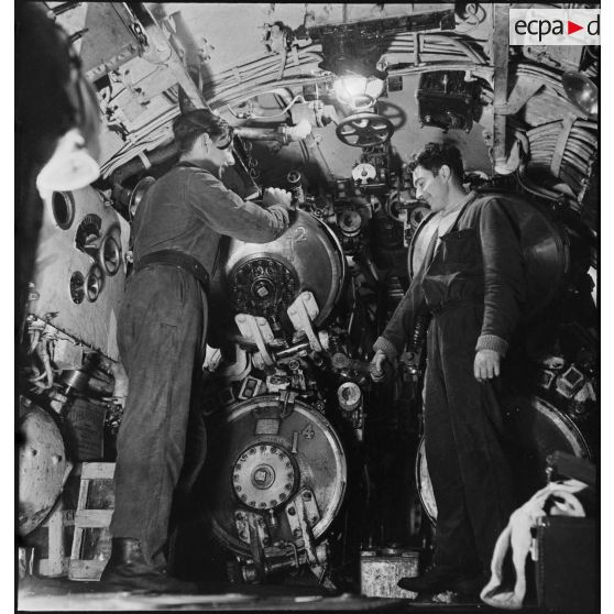 Poste central du sous-marin la Minerve des Forces navales françaises libres (FNFL).