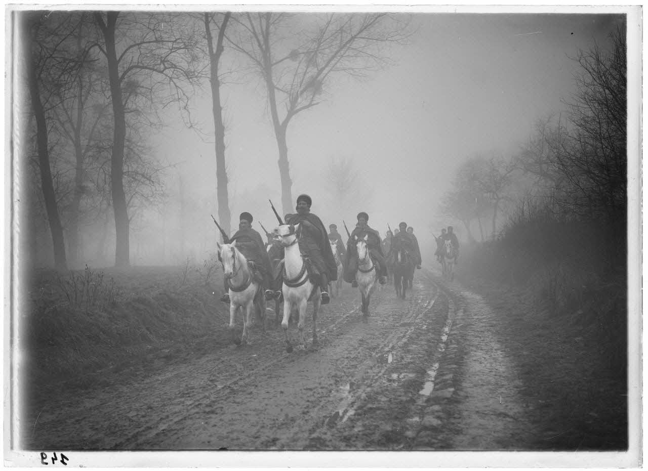 D66-15-108 : En reconnaissance dans le brouillard de l'Oise. Spahis. Oise, 1916.