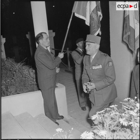 Arrivée du général Cailles pour une projection à l'occasion du 9e anniversaire du début de la bataille du Garigliano à Alger.