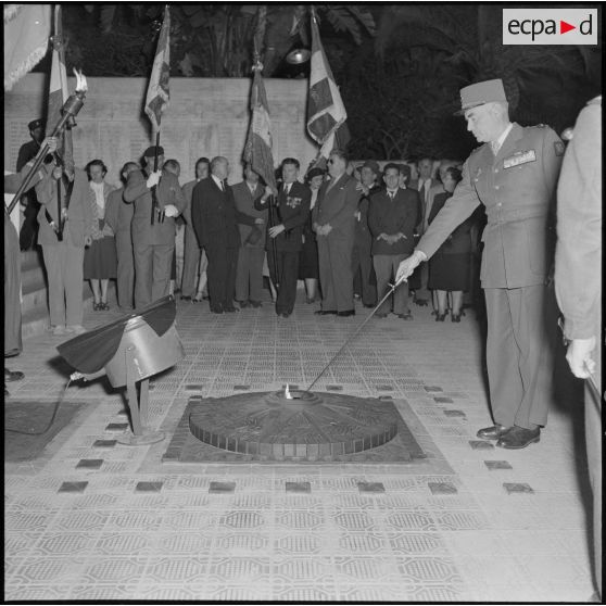 Ranimage de la flamme au monument aux morts d'Alger lors du 9e anniversaire du début de la bataille du Garigliano à Alger.