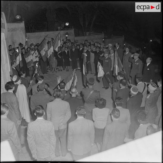 Spectacle organisé pour le 9e anniversaire du début de la bataille du Garigliano à Alger, en présence du général Cailles.