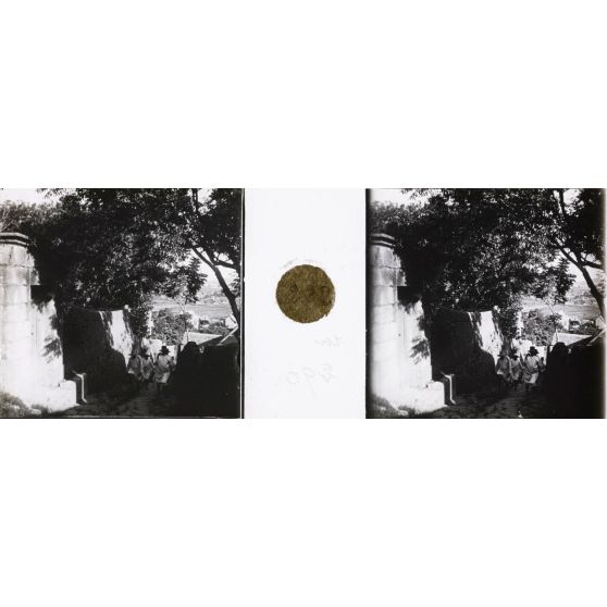 D68-21. Cet ensemble photographique est consacré aux diverses constructions se dressant le long des sentiers qui descendent du palais de la Reine : cases, boutiques et ruines d'anciennes fortifications érigées pour interdire l'accès au palais. Il présente également le quartier résidentiel européen de Faravohitra.