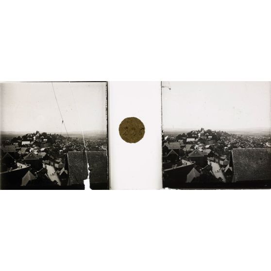 Le fonds photographique René Denis comprend 517 positifs sur plaque de verre stéréoscopiques de dimensions 4,5x10,5 cm réalisés entre 1907 et 1909. Les légendes des photographies sont reportées dans un "catalogue de photographies de Vérascope" composé de deux cahiers manuscrits.