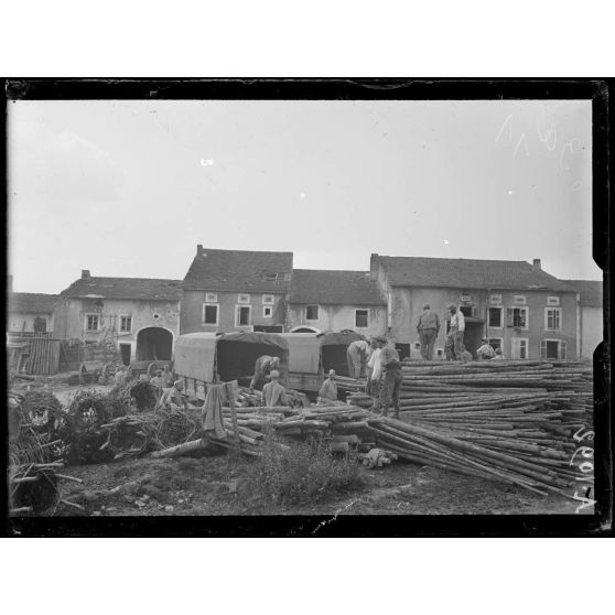 St Martin. (Meurthe et Moselle). Chargement de bois pour les 1eres lignes.