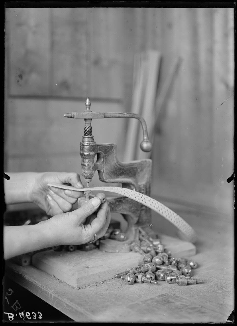 St Ouen, usine Ruggieri, artificier. Chargement et amorçage des fusées d’obus VB. Nettoyage et gommelaquage des fusées.