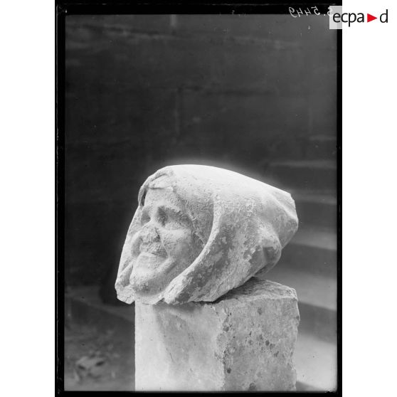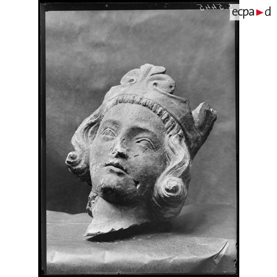 Les statues de la cathédrale de Reims doivent être restaurées. Clichés de statues (têtes et bustes), de sculptures et d'objets de culte de la cathédrale.