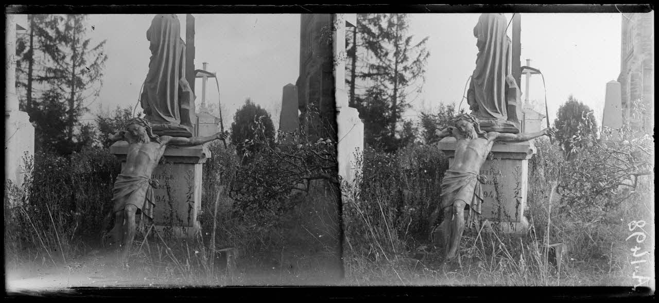 Steinbach. Christ brisé dans le cimetière. [légende d'origine]