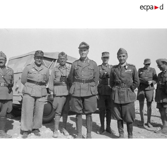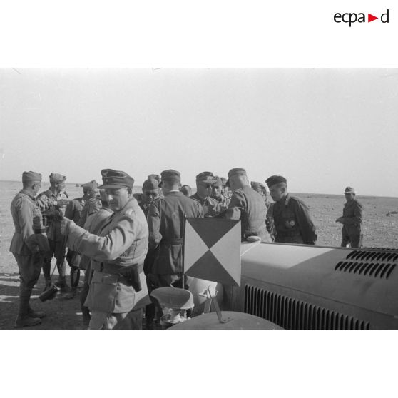 Les généraux Ludwig Crüwell et Fedele De Giorgis, entourés de leur état-major respectif.