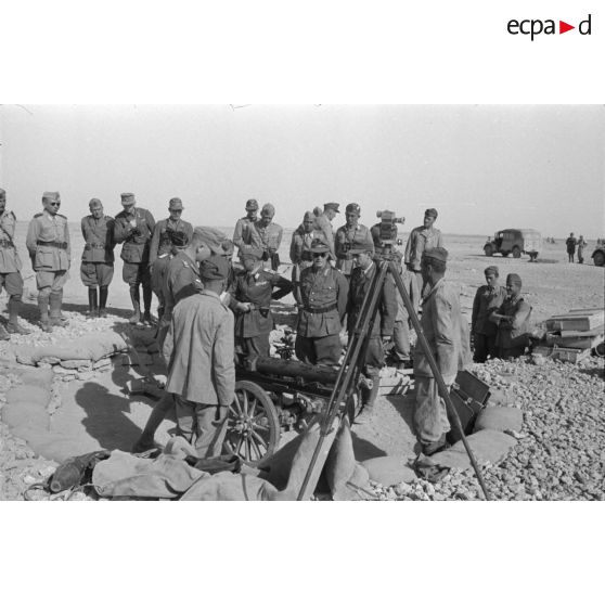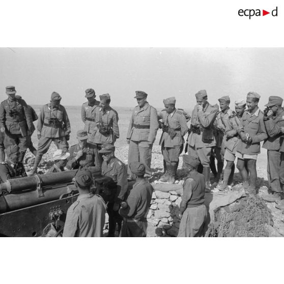 Le général (Generalleutnant) Ludwig Crüwell inspecte une zone tenue par des unités allemandes (Flak-regiment 135) et italiennes (Savona).