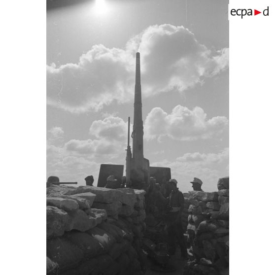 Les servants d'une pièce de 8,8 cm FlaK protégée dans une position enterrée.