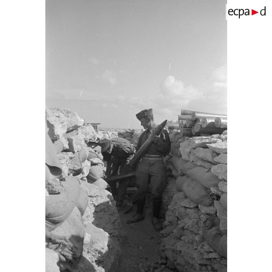 La position est occupée par une unité d'artillerie, (probablement le 26e régiment d'artillerie italien), renforcée d'une batterie de 8,8 cm Flak allemande. Ces unités appartiendraient à la 17e Divisione Fanteria Pavia. Le général Crüwell se fait présenter des alvéoles dotées de canons italiens de montagne de 65 mm modèle 1913, de 8,8 cm FlaK allemande et de 100/17. Une alvéole est aussi occupée par un mortier 35/5 M35 Brixia. La visite du général Crüwell est suivie par le cameraman Hermann Dressler de la 7e compagnie de propagande de l'armée de l'air allemande (Luftwaffe Kriegsberichter Kompanie). La position est renforcée par le creusement de tranchées et la pose de réseaux de barbelés.