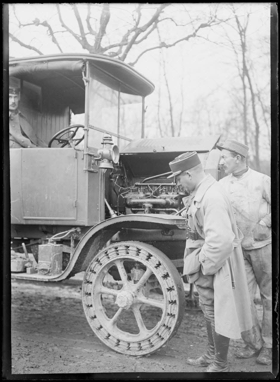 Strasbourg. Camion Daimler avec roue ferrés avec armotisseurs pour remplacer pneumatiques. [légende d'origine]