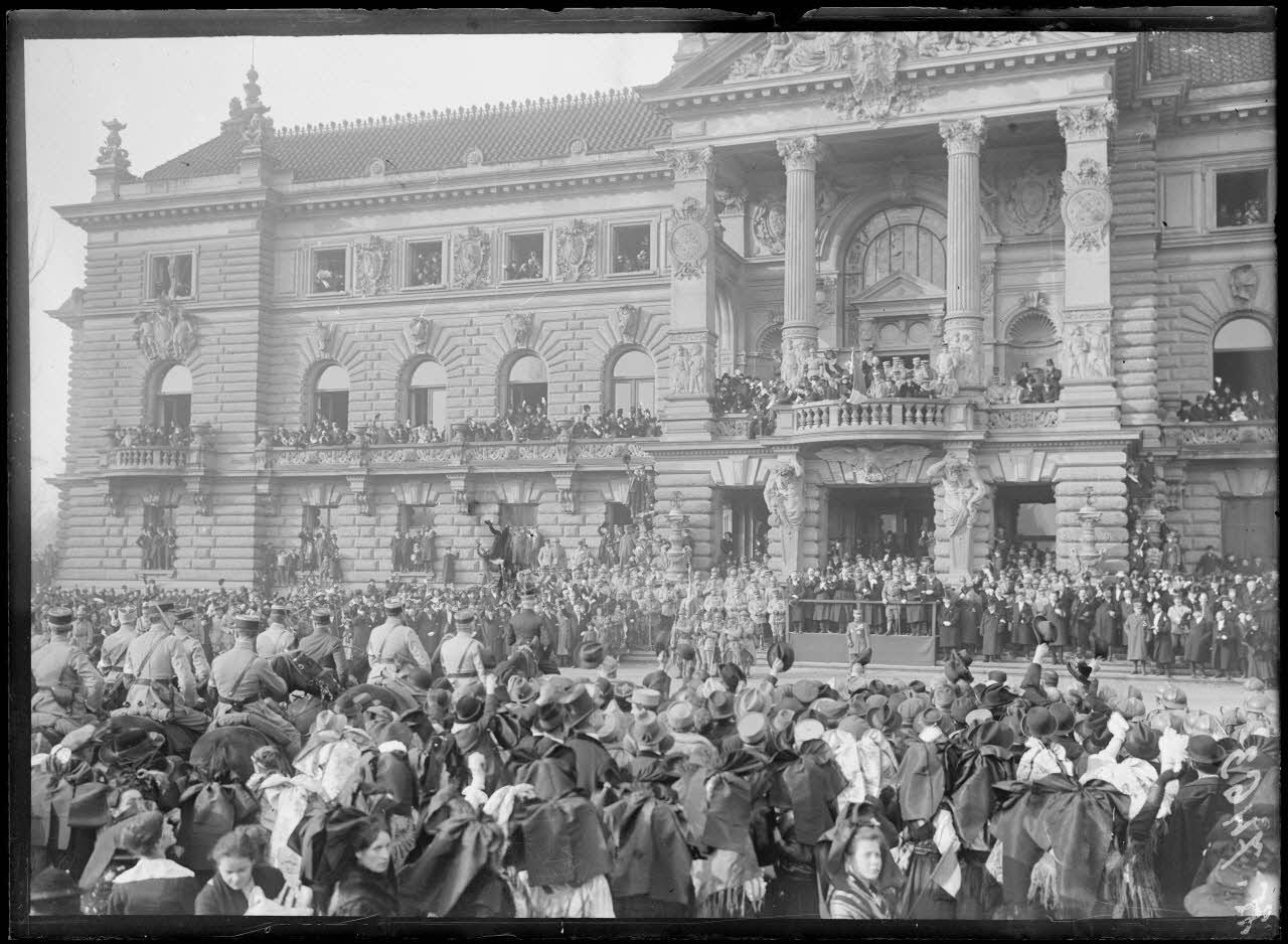 Accueil des troupes par la population à Strasbourg, novembre 1918.