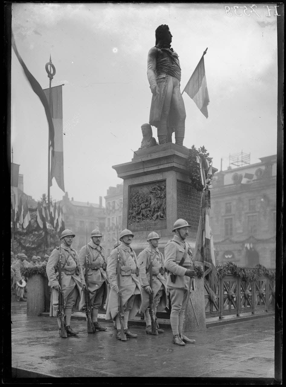 Dans le centre de la ville, le président Raymond Poincaré et Georges Clemenceau sont accueillis par une haie d'honneur (drapeau du 246e RI (régiment d'infanterie)). Accompagnés par la foule et par un cortège de jeunes Alsaciennes, ils se rendent à la cathédrale.
