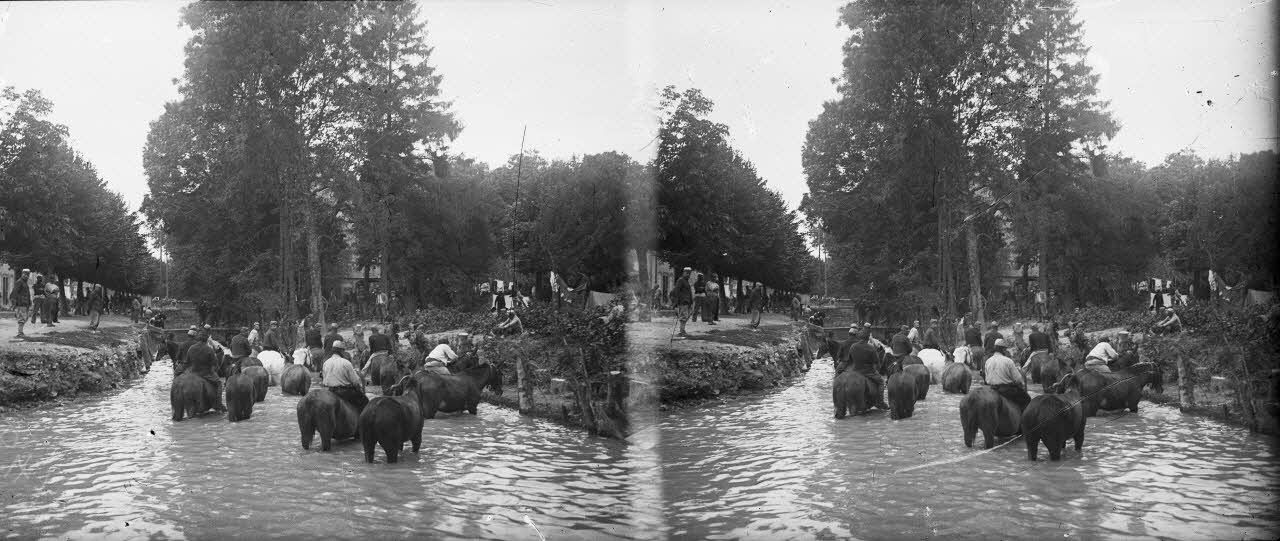 Suippes (4e armée). Chevaux à l’abreuvoir.