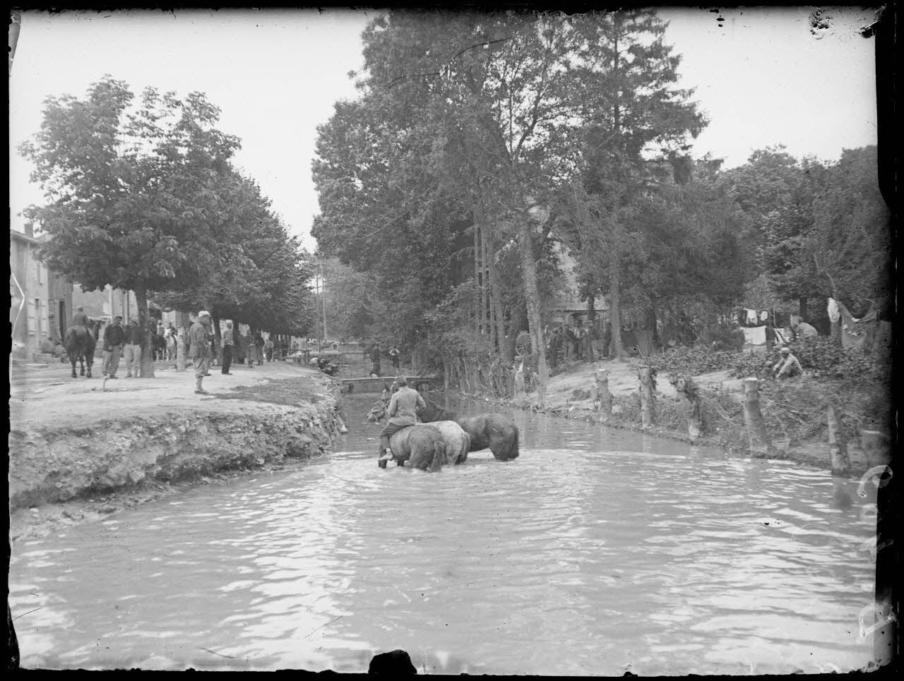 Suippes (4e armée). Chevaux à l’abreuvoir.