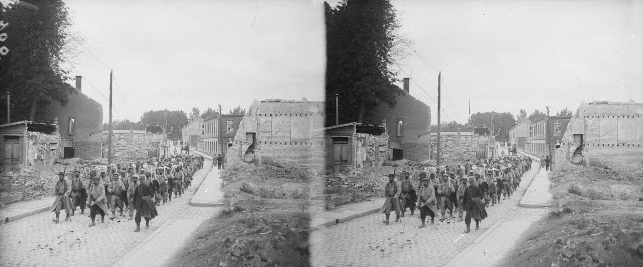 Suippes (Marne). Territoriaux revenant d’exécuter des terrassements. [légende d’origine]