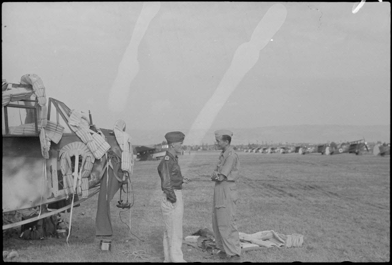 Sur l'aérodrome de Valence-Chabeuil (Drôme), des planeurs DFS-230 du Luftlandegeschwader 1 peu avant une mission.