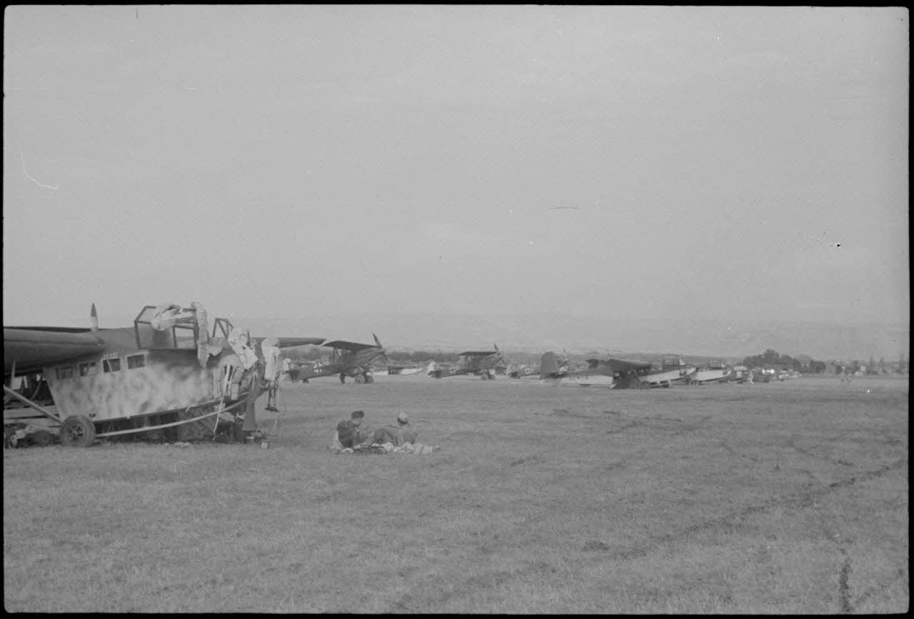 Sur l'aérodrome de Valence-Chabeuil (Drôme), des avions du Luftlandegeschwader 1 (LLG 1) peu avant une nouvelle mission.