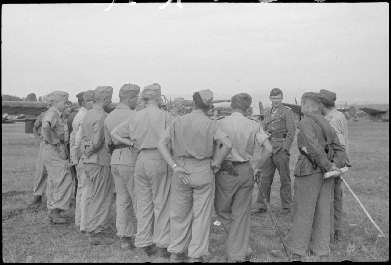 Sur l'aérodrome de Valence-Chabeuil (Drôme), après un briefing, des pilotes du Luftlandegeschwader 1 (LLG 1) patientent avant le décollage.