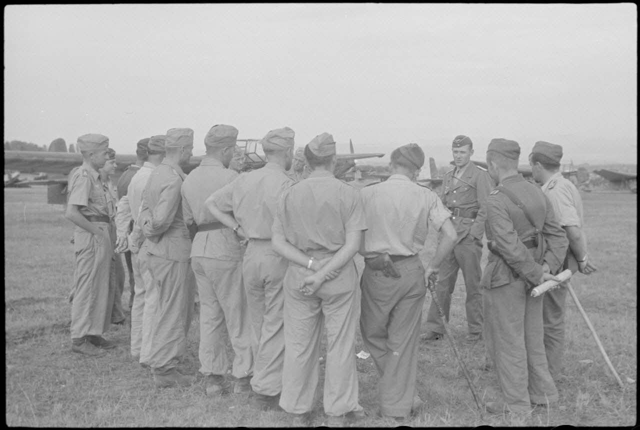 Sur l'aérodrome de Valence-Chabeuil (Drôme), après un briefing, des pilotes du Luftlandegeschwader 1 (LLG 1) patientent avant le décollage.