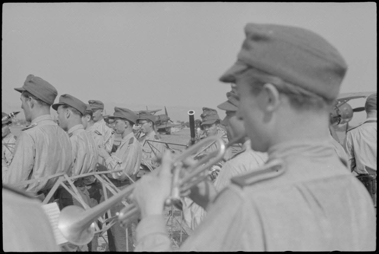 Sur l'aérodrome de Lézignan-Corbières, des musiciens de la Luftwaffe viennent divertir le personnel du Luftlandegeschwader 1.
