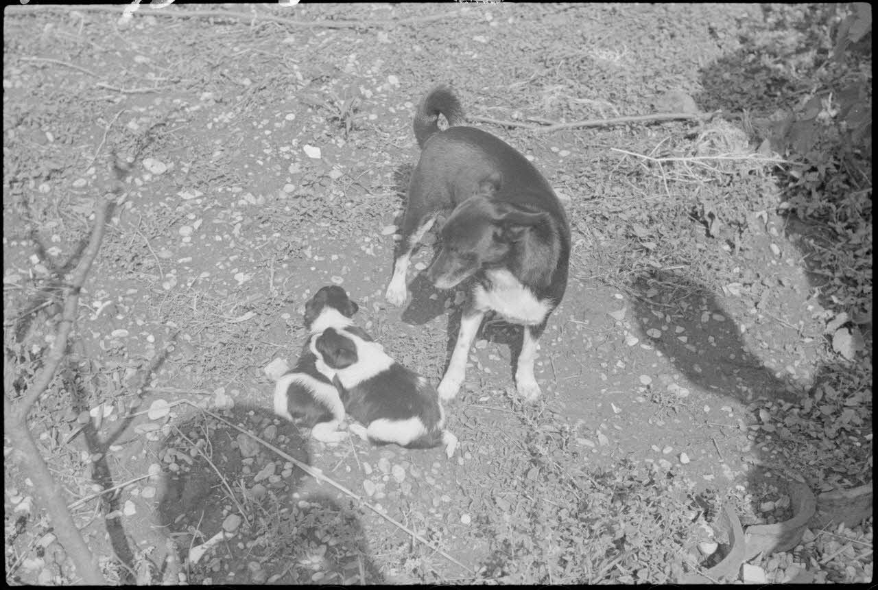 Sur l'aérodrome de Valence-Chabeuil (Drôme), occupé par le Luftlandegeschwader 1, une chienne et ses chiots.