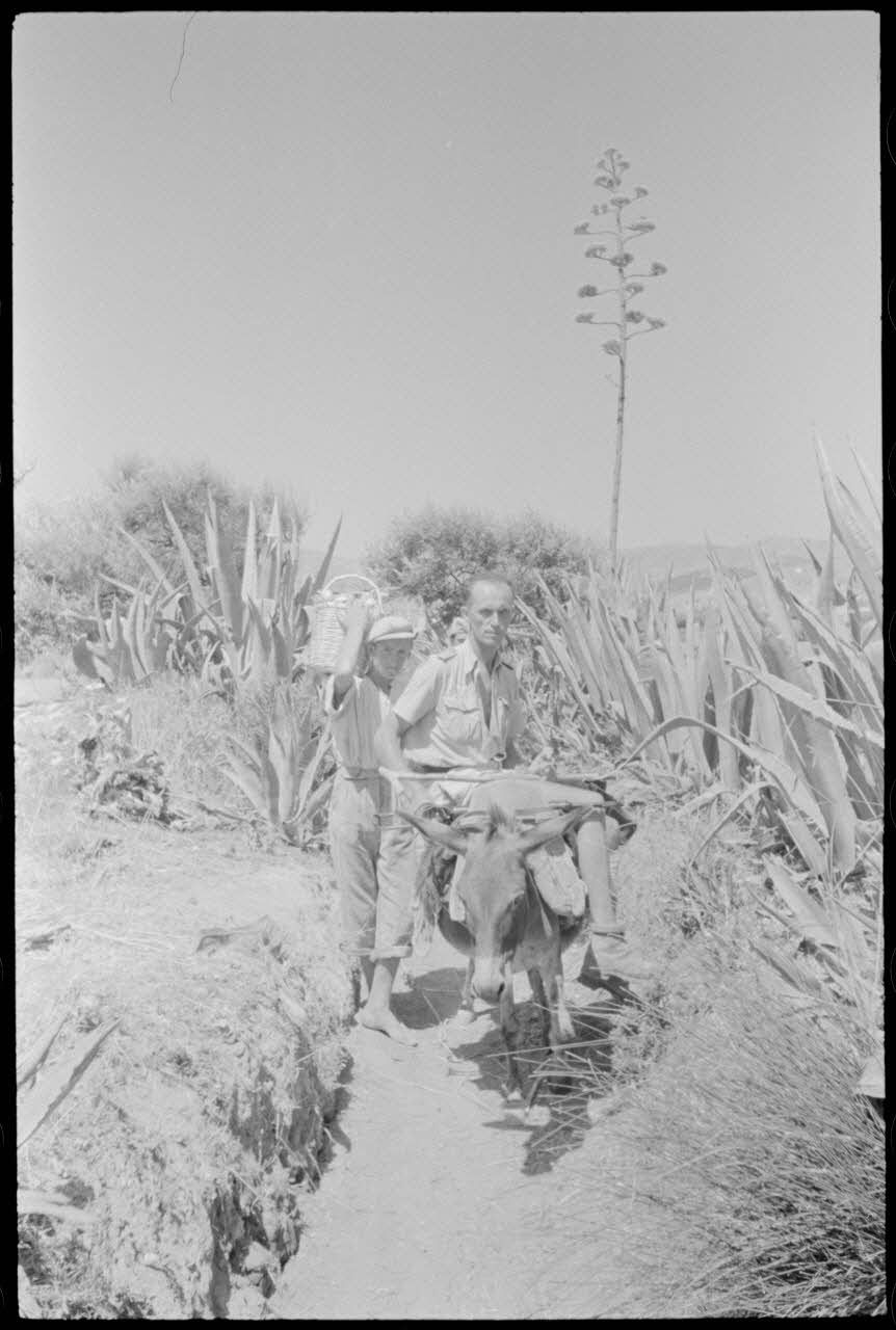 Un habitant de Naxos accompagné de son âne pose devant une agave.