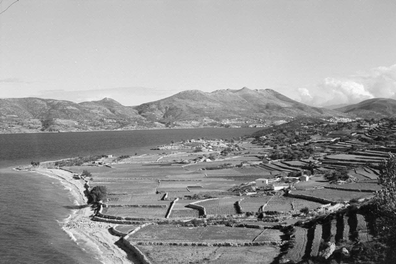 Rassemblement de prisonniers italiens sur l'île de Samos (Grèce).