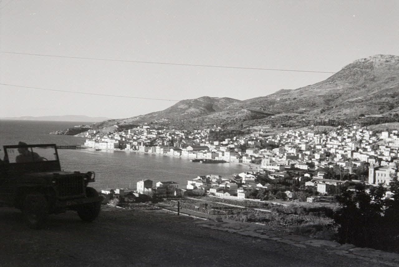 Le Major (commandant) Sylvester von Saldern Brallentin quitte un bâtiment occupé par le I./ Infanterie Regiment 65 ou la 22 Infanterie-Division ( 22-ID). Von Saldern Brallentin monte à bord d'une jeep britannique capturée et parcoure l'île de Samos et notamment le secteur du port de Vathy. A l'arrière de cette jeep d'origine britannique, le nom du Major von Saldern Brallentin est indiqué. Le Major pose pour le reporter certainement suite à sa remise de décoration (Ritterkreuz). On le retrouve notamment devant un semi-chenillé Sd.kfz. 10/5 posté pour la défense du port de Vathy.