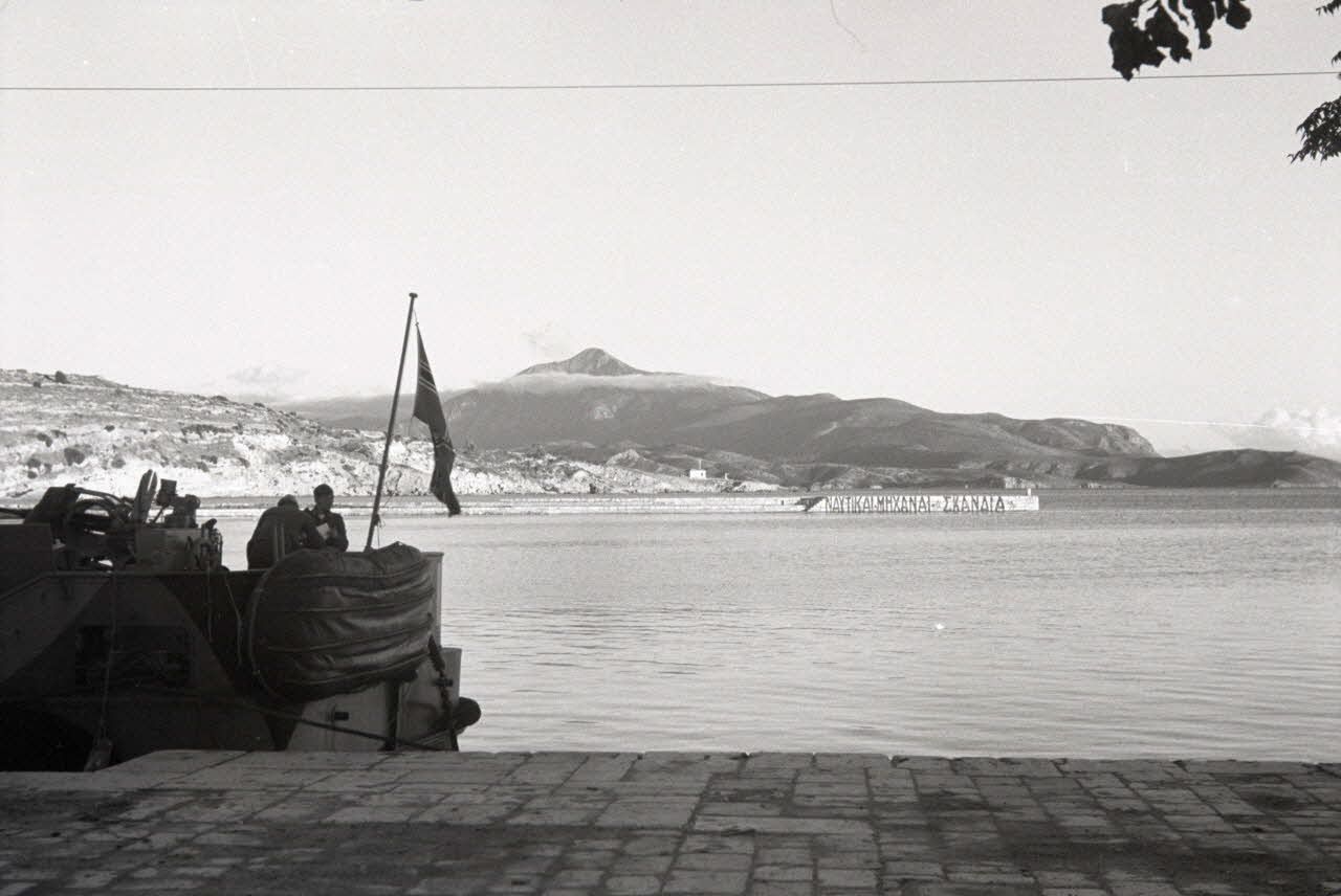 Sur l'île de Samos, un bâtiment de la marine allemande dans la baie de Vathy, peut-être un navire de la 12.Räumbootsflottille.