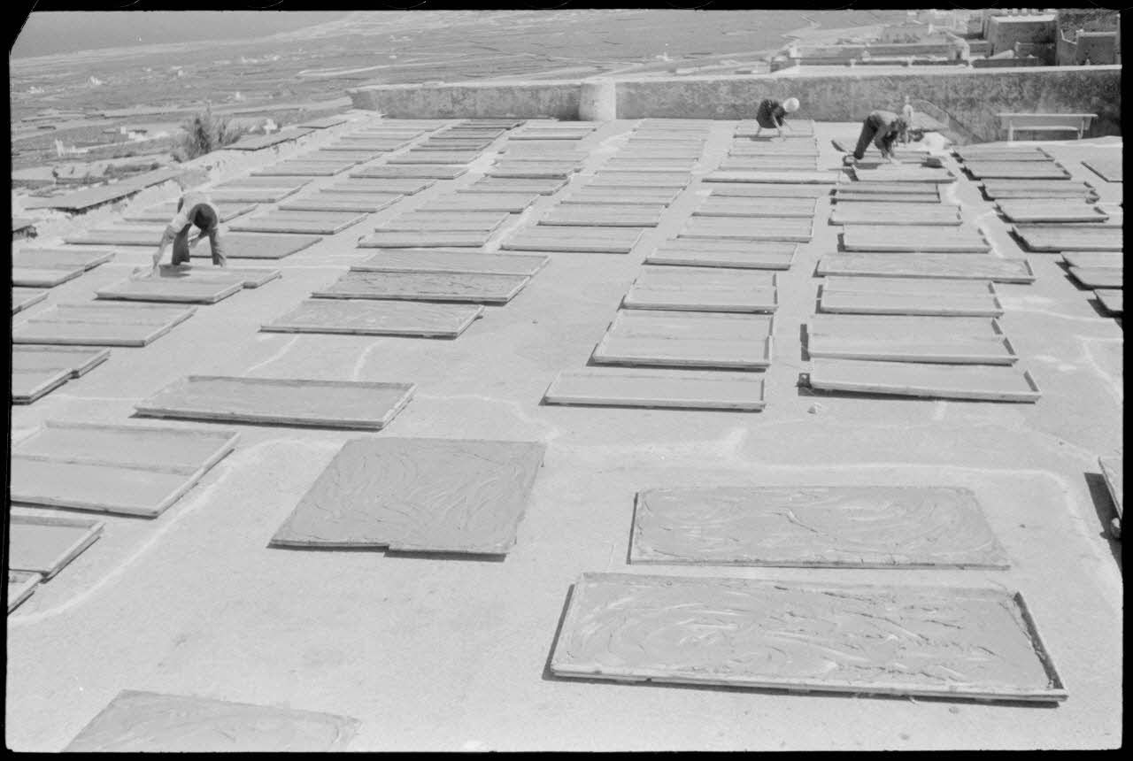Sur l'île de Santorin, la fabrication du pisé.
