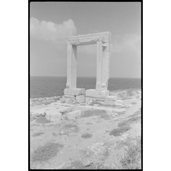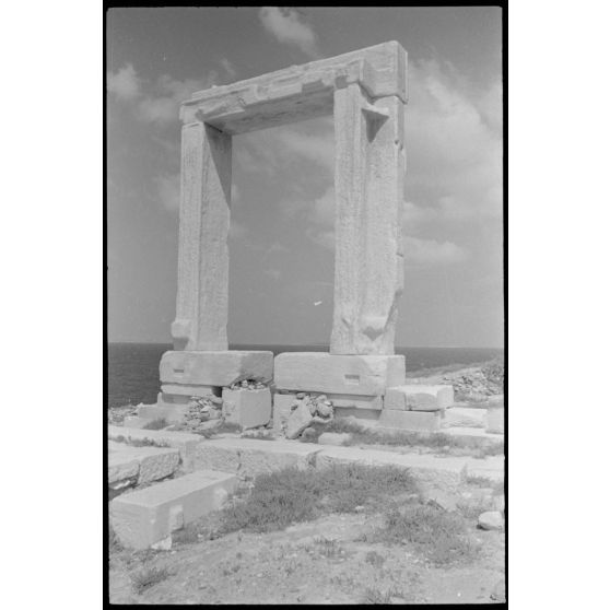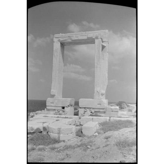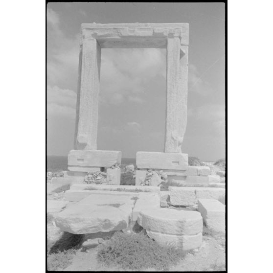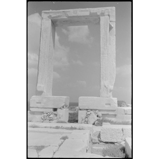 Sur l'île de Naxos, la porte (Portara) du temple d'Apollon (Apóllonas).