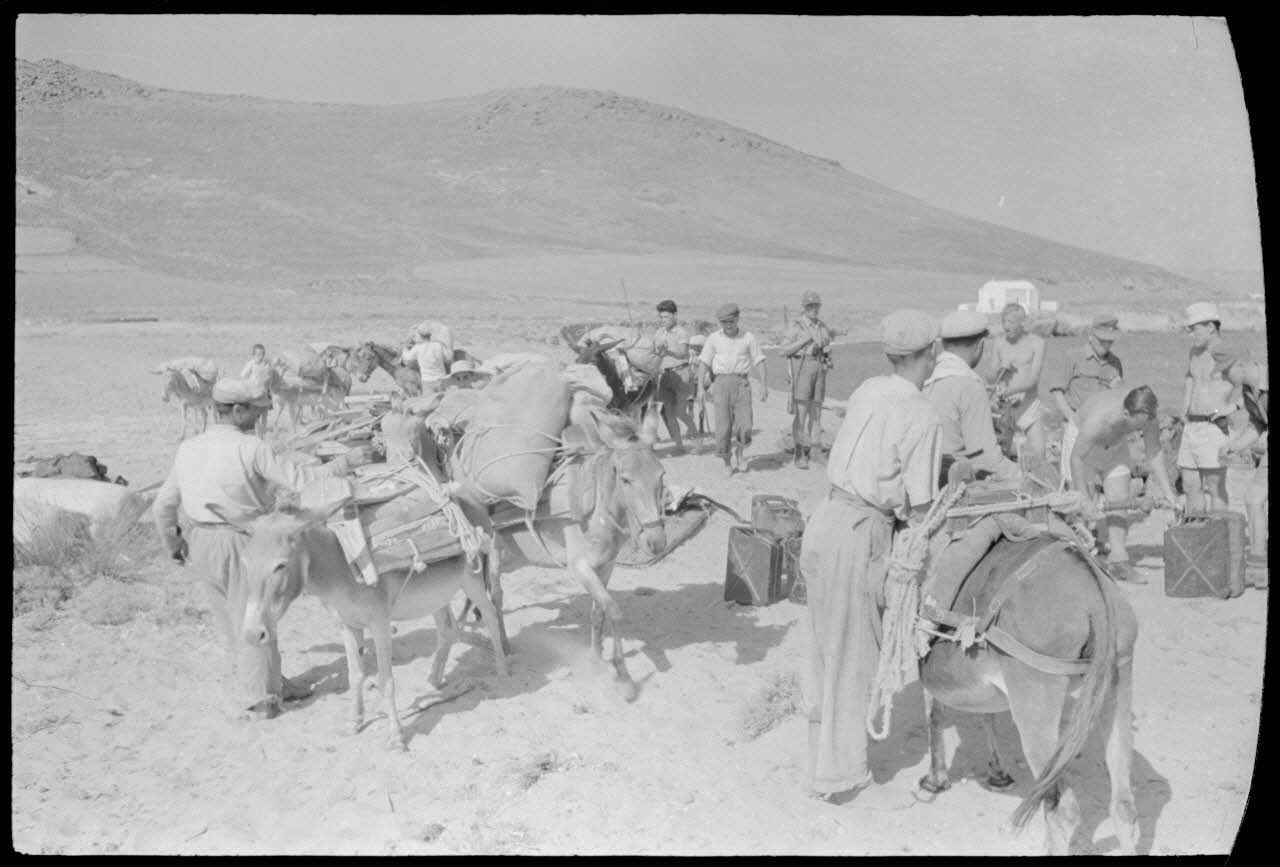 Sur la côte de l'île de Naxos, des habitants sont réquisitionnés pour le transport de jerrycans.