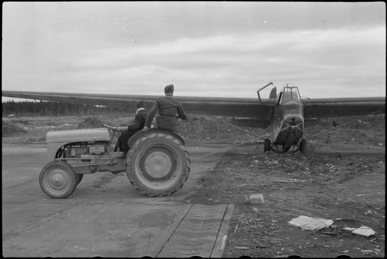 Des vérifications d'usage avant une mission pour un planeur DFS-230 du Luftlandegeschwader 1 (8./LLG 1) sur la piste du terrain d'aviation de Banak.