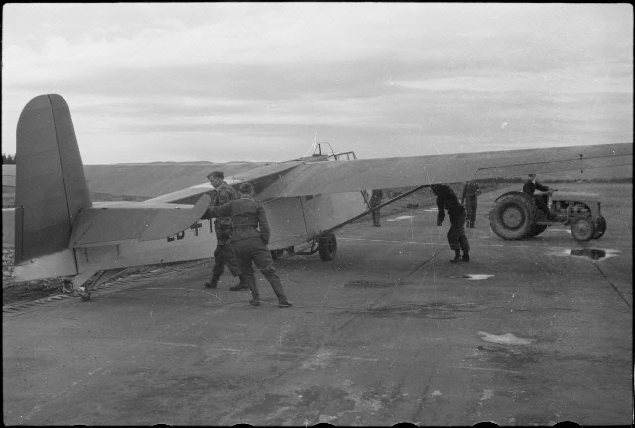 Des vérifications d'usage avant une mission pour un planeur DFS-230 du Luftlandegeschwader 1 (8./LLG 1) sur la piste du terrain d'aviation de Banak.