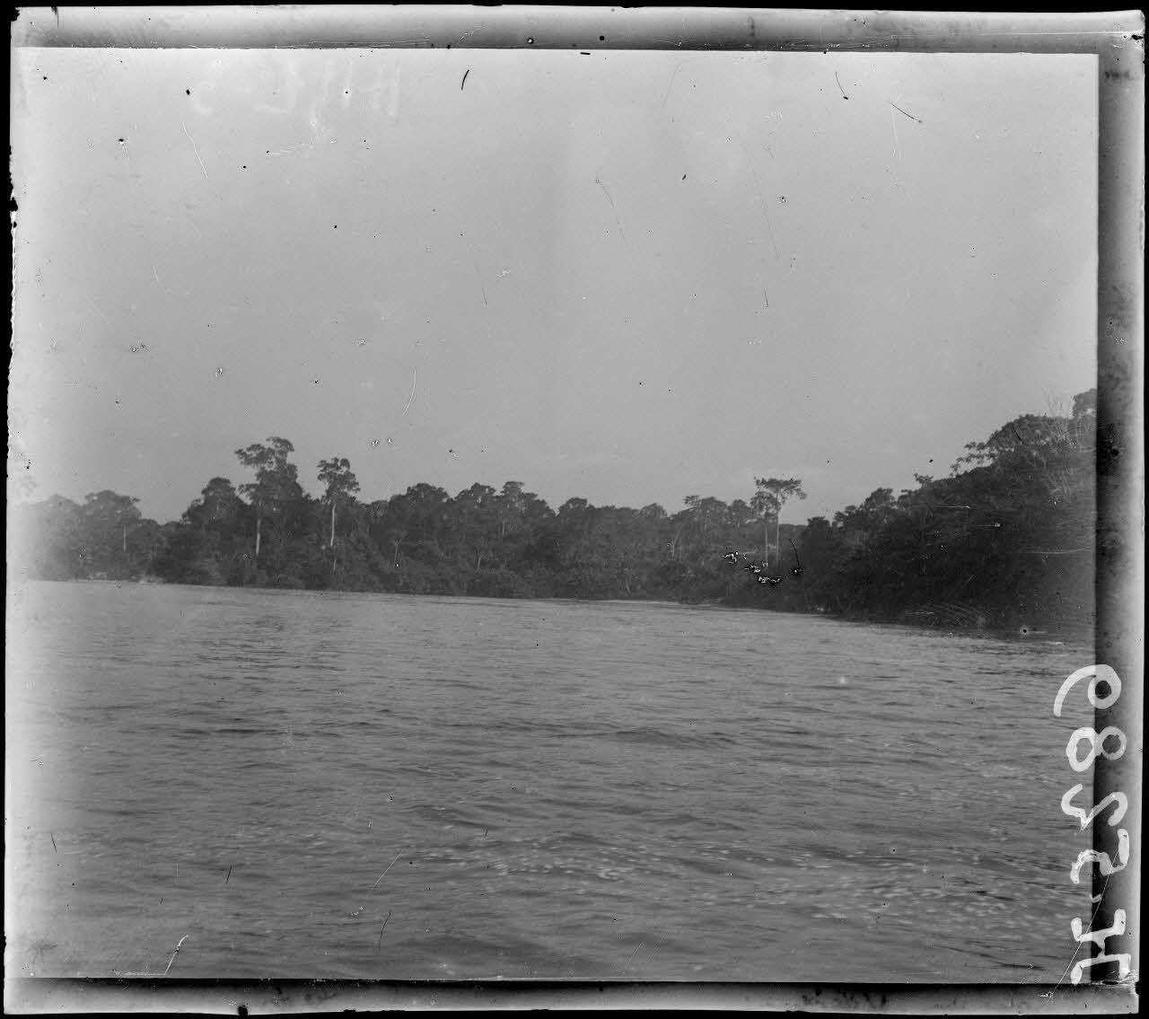 Sur le Campo. La chaloupe du poste remontant la rivière Campo.