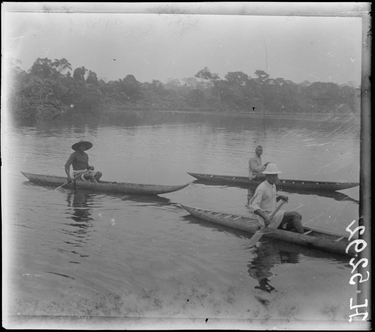 Sur le Campo. Le chef de l'île de Dipikar et deux notables sur leurs pirogues. [légende d'origine]
