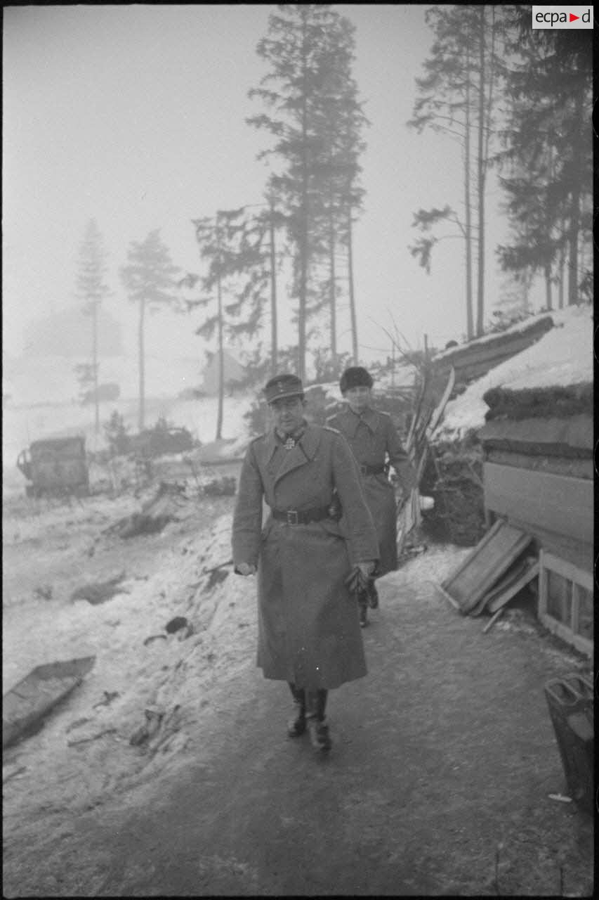 Un général allemand non identifié quitte son bunker.